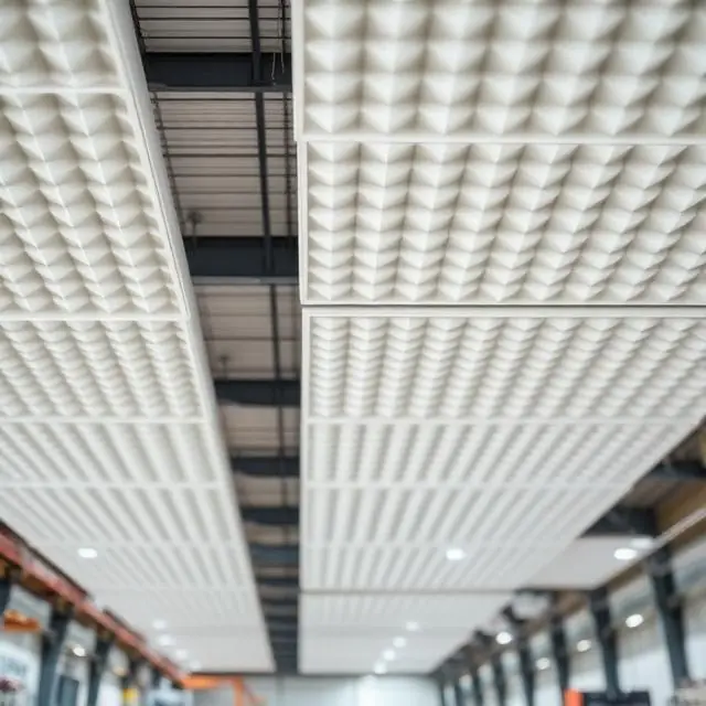 High ceilings amplify noise in factories and warehouses. Installing acoustic ceiling baffles or clouds helps trap sound before it spreads.