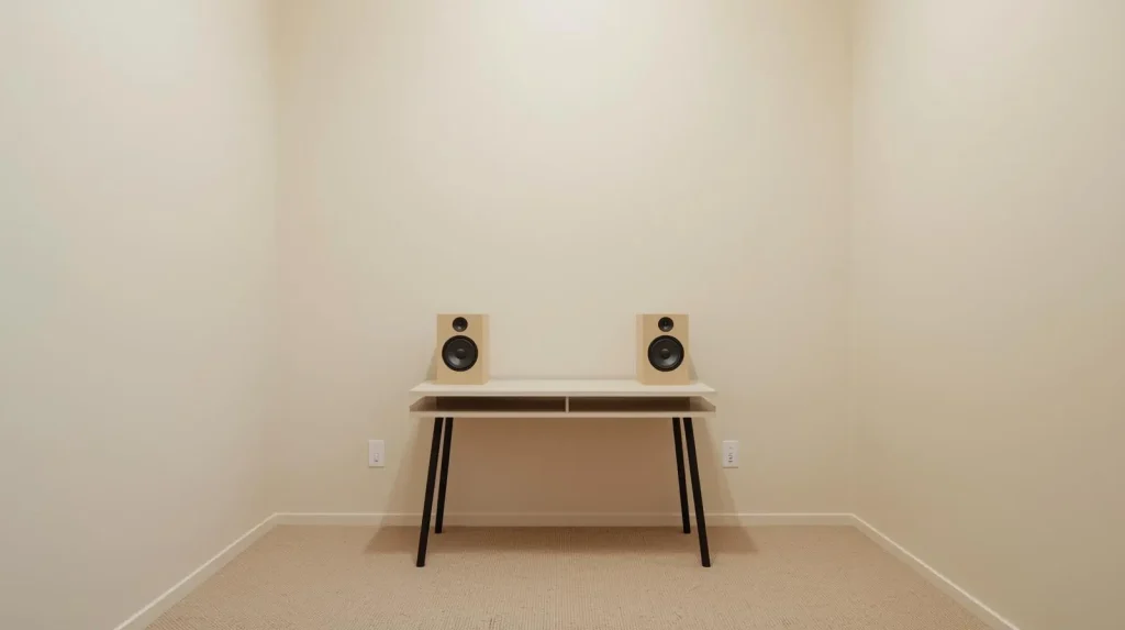Place your desk and speakers so that both sides of the room mirror each other. This helps achieve consistent stereo imaging.