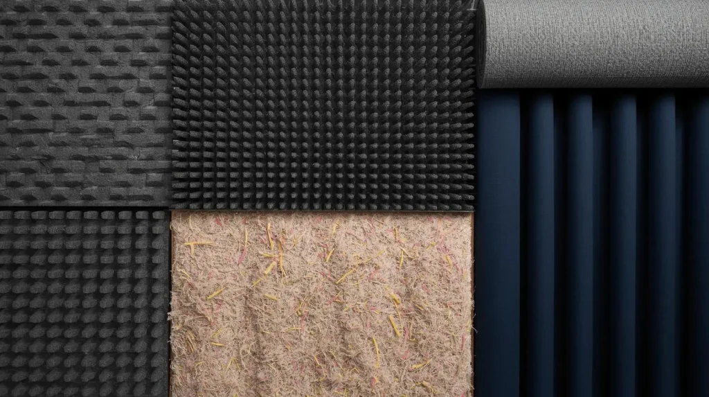 Dense flexible material that adds weight and blocks sound. It works well for walls and ceilings. - Acoustic foam panels