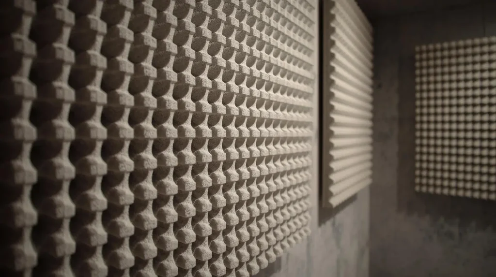 - Absorption: Using soft, dense materials that soak up sound.