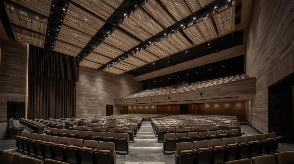• Double-Layered Acoustic Walls: Provide a separation between structural layers that prevent external noise before it enters the performance space.